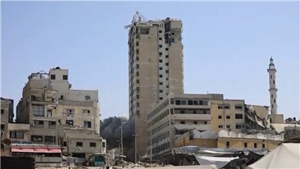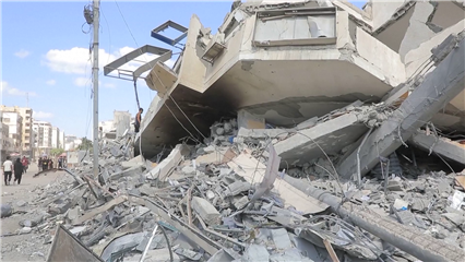 Displaced Palestinians face shelter crisis as Israel's airstrike destroys residential tower